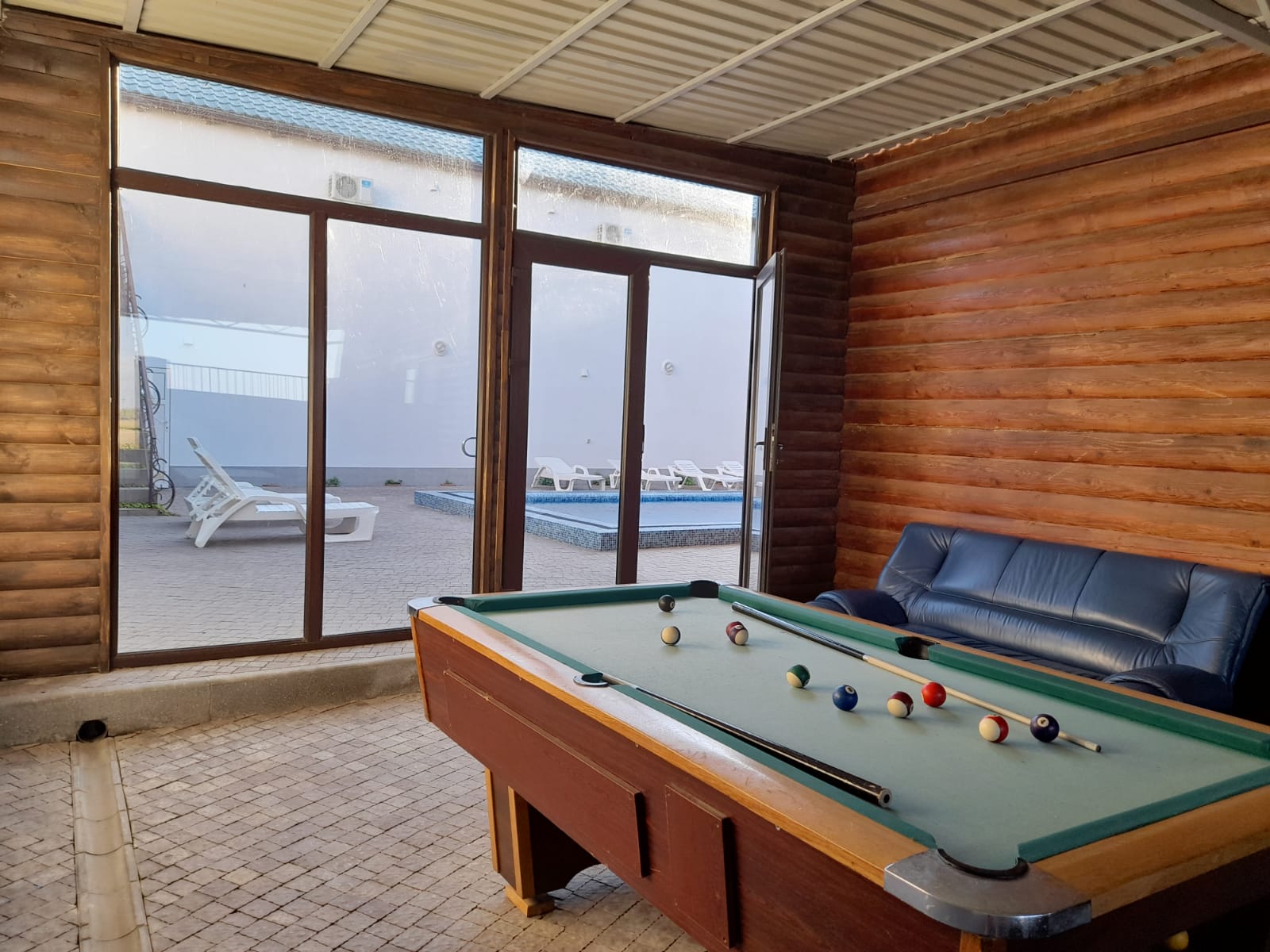 - Во дворе бильярдный стол, мангал, обеденный стол, зона отдыха, бассейн.